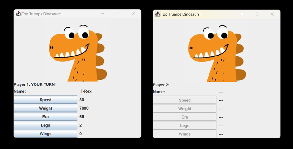 Progression Projects Dinosaur Top Trumps, a game with 2 player capability Highway Havoc, a co-created game where you dodge oncoming roadblocks